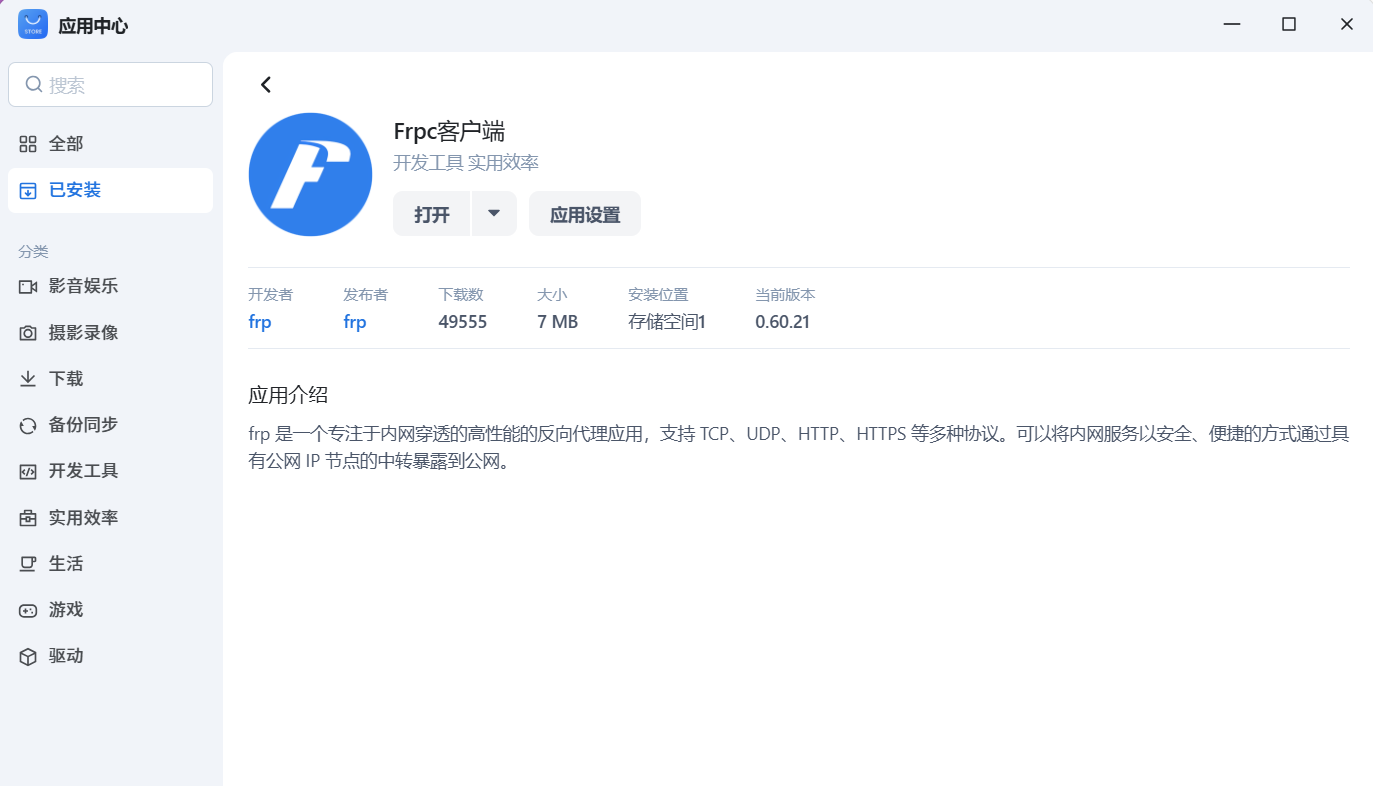 - 本地客户端安装frpc服务,飞牛os为例可直接在应用商店安装