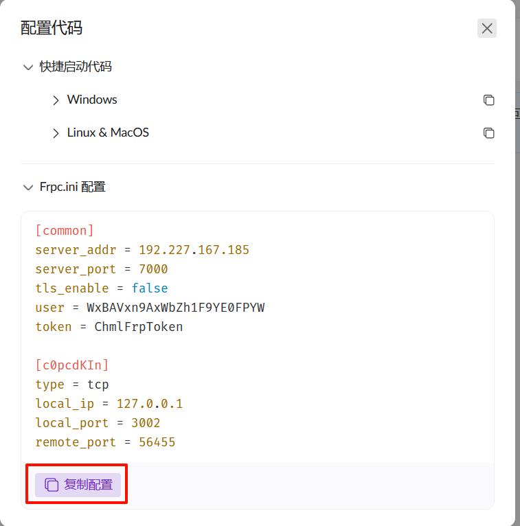 - 复制代码,不同客户端的启动代码都有,我是飞牛os,所以复制最下面的